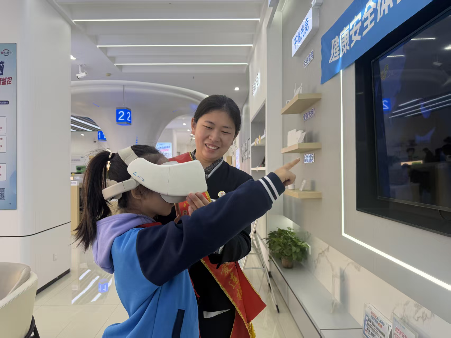 在移动营业厅,移动红绶带小姐姐正含笑为系着红领巾的小女孩调整5GVR眼镜。她的动作轻柔,指尖拂过镜腿时,像春风掠过花瓣。别紧张,5G网络