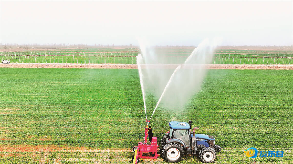 在垦利区垦利街道农田里,固定式喷灌水流从喷头中喷涌而出,洒向绿油油的麦田。春回大地万物苏,农事繁忙正当时。眼下,垦利区全面进入春灌