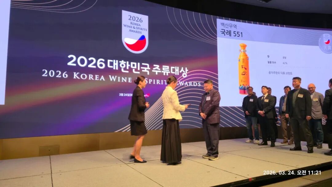 速豹新闻网 东鹏3月24日,山东孔子酒业有限公司核心战略产品 —— 孔子酒国礼 551,在备受瞩目的「2026 大韩民国酒类大奖评选中,凭借