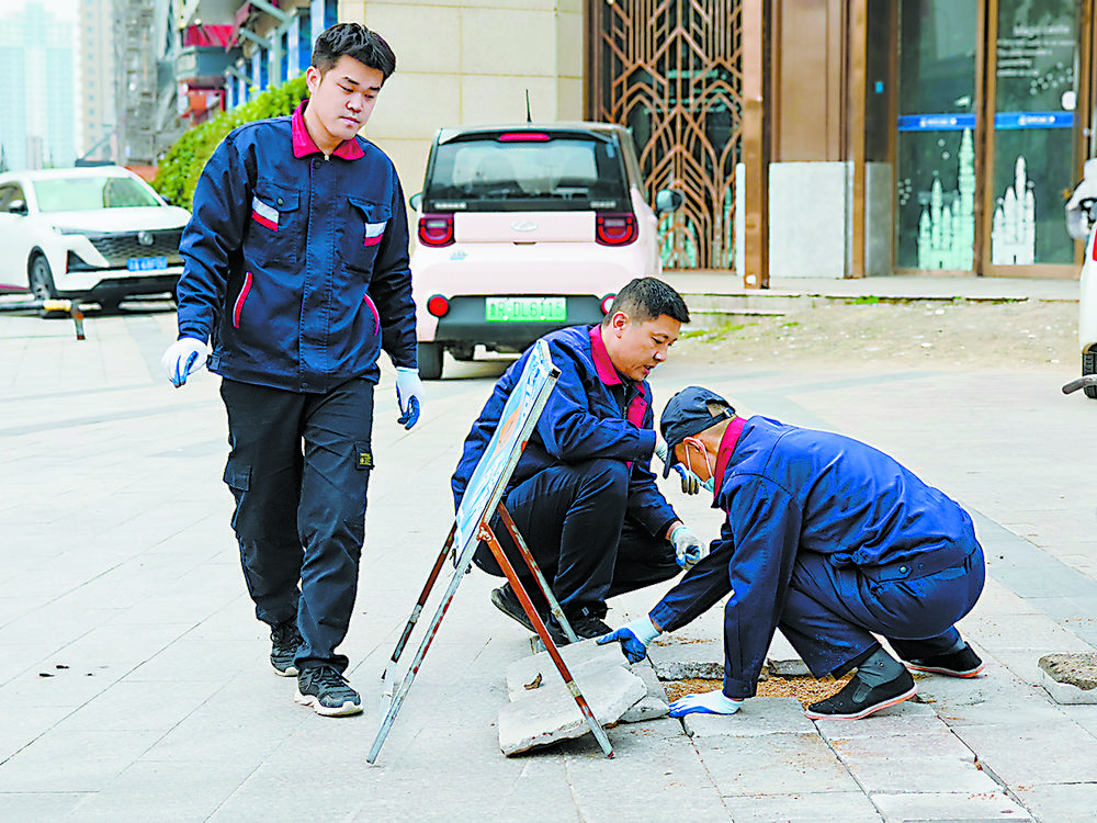 速豹新闻网 李冬访 通讯员 赵忠宇近日,在城区长江路与府东路交叉口广场上,菏泽鲁西新区综合行政执法局工作人员正在平整地面、铺设新砖