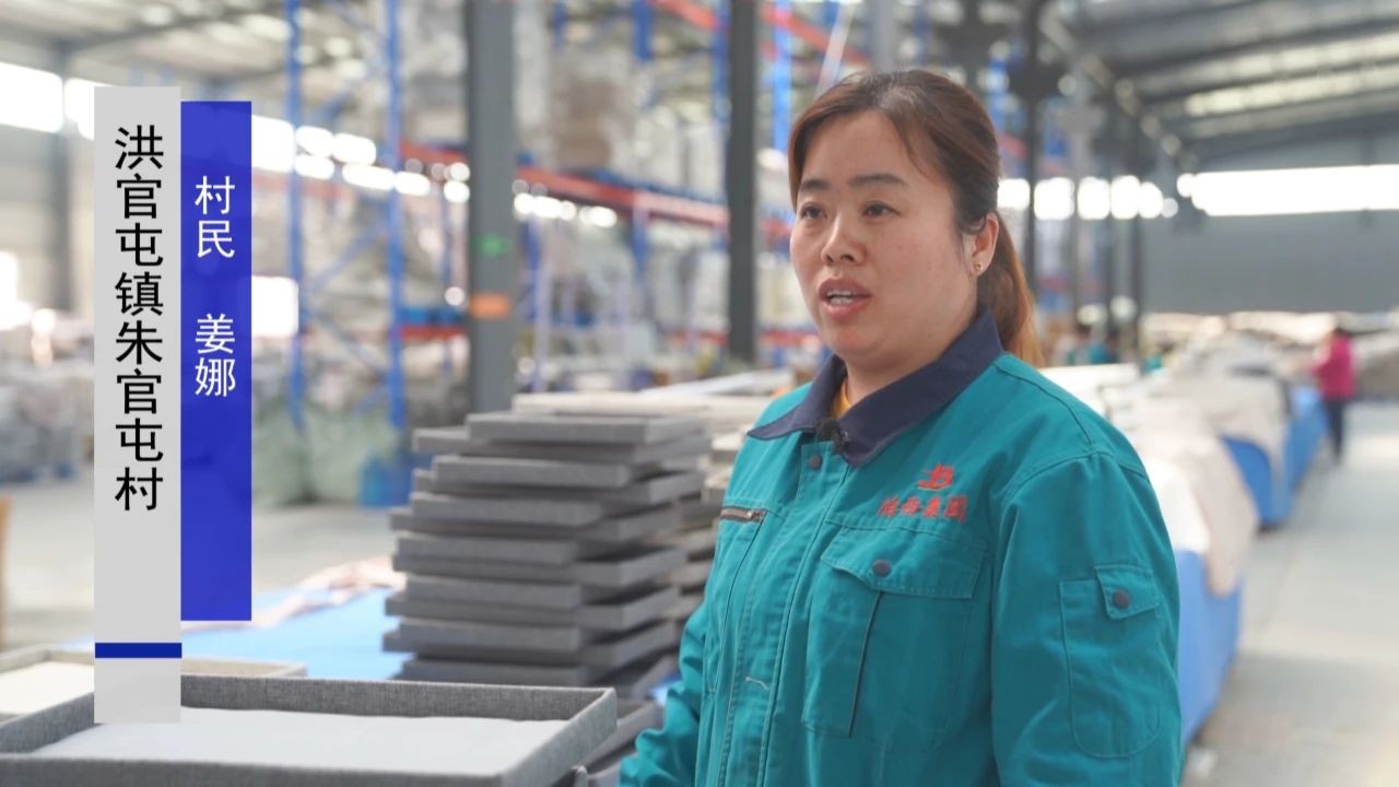 洪官屯镇朱官屯村村民姜娜说:“我是朱官屯村的,在这里干活一个月4000多块钱,也不耽误照顾老人和孩子,挺好的。”
