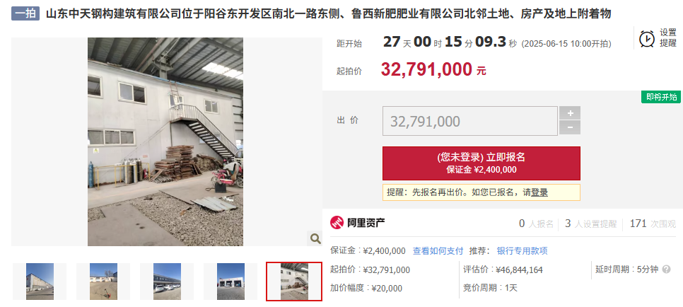 山东商报·山海新闻了解到,近日,山东省聊城市中级人民法院在淘宝司法拍卖网络平台发布一则资产拍卖公告,拟对山东中天钢构建筑有限公司位