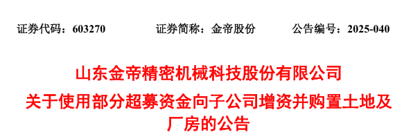 山东商报·山海新闻了解到,近日山东金帝精密机械科技股份有限公司(以下简称金帝股份)发布公告,拟使用部分超募资金及自有资金对下属子公