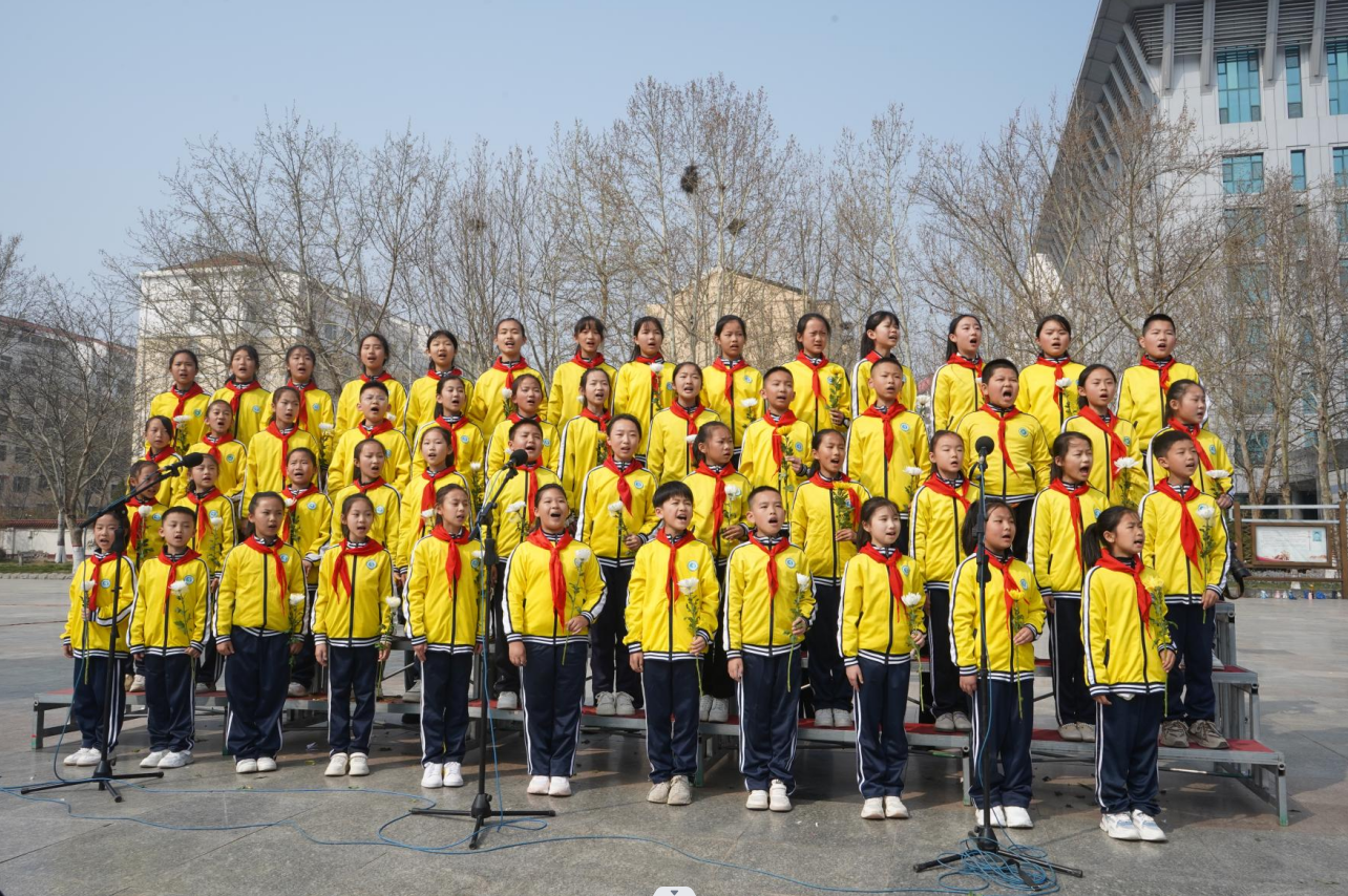 紧接着,聊城市实验小学红领巾合唱团演唱了《山河已无恙》,歌声悠扬,传递出对和平安宁生活的珍惜和对革命先烈的缅怀之情。全体人员集体诵读《沁园春·长沙》,用诗词的力量激发青少年的爱国情怀。在场人员依次向聊城市革命烈士陵园烈士纪念碑敬献鲜花,表达对英烈的深切缅怀。