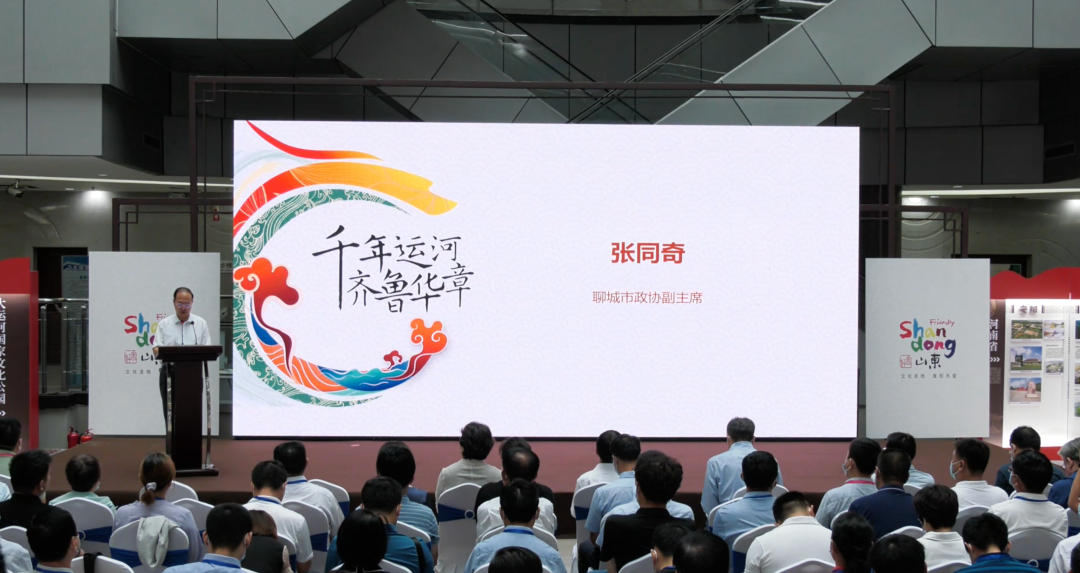 聊城市政协副主席张同奇在致辞中表示,大运河是流淌千年的诗,记录聊城“依水而存,因水而兴”的厚重历史。大运河开掘于春秋,完成于隋朝,繁荣于唐宋,取直于元代,疏通于明清,这其中每一段历史都与聊城息息相关。大运河是文韵悠长的画,绘就聊城钟灵毓秀、弦歌不辍的灿烂文化。数千年来,大运河见证了聊城的发展进程,推动形成特色鲜明的漕运文化、商业文化、民俗文化。大运河是温婉绵长的歌,诠释聊城诚信重诺、宽厚包容的精神特质。生活在这座城市的人们,世世代代都在传承这种精神,每一个故事都在续写这种精神。