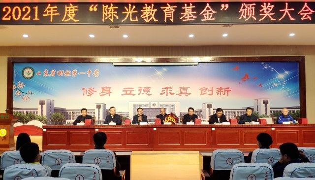 11月19日,2021年度“陈光教育基金”颁奖大会在聊城一中新校区学术报告厅举行。聊城建工集团董事长陈光,聊城一中党委书记、校长李荣军,陈光教育基金会秘书长郭东光及聊城一中121名获奖师生等参加活动。聊城一中副校长国怀志主持活动。
