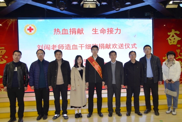 2月25日,聊城莘县为春笋学校教师刘闯赴济南捐献造血干细胞举行欢送仪式。第三例造血干细胞捐献者刘闯,县人大常委会常委、县红十字会党组书记、常务副会长姚洪印,县教体局党组成员、总督学胡绍东,县红十字会党组成员、副会长王涛、王忠华,县红十字会事业发展部主任张青霞,县春笋学校校长郝庆军及有关负责人参加欢送仪式。