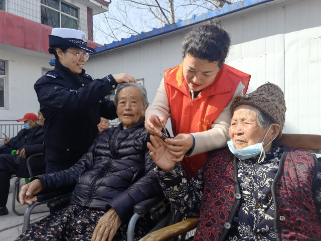 在敬老院,民警和志愿者主动帮老人修剪指甲、梳头发,与老人拉家常,嘘寒问暖,嘱咐老人保重身体,向老人讲解日常养生保健知识。随后,民警和志愿者们又来到厨房,当成义务“厨工”,与厨师一起动手包水饺、煮水饺,还拿起扫帚、抹布帮助老人打扫院落、清理垃圾等,敬老院被打扫得干干净净,为老人们营造了一个更加清新、干净的生活环境,让老人们感到无比地温馨。民警还向敬老院赠送了20个印有交通安全宣传标语的脸盆等日常用品。