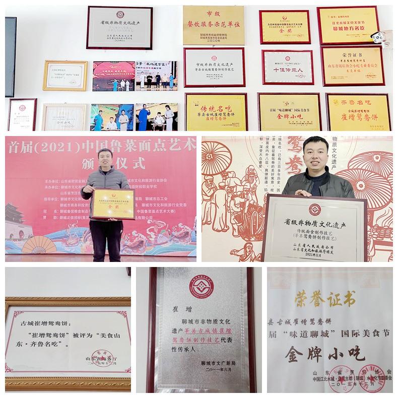 崔增表示,古城独有的鸳鸯饼制作技艺,如今规模变得越来越大,在一代代传承发展下,成为该镇居民增收的产业之一。作为一名1983年生人,传统面食制作技艺暨莘县鸳鸯饼制作技艺的省级第四代传承人,崔增自幼就在鸳鸯饼制作技艺言传身教的环境中长大。作为当地鸳鸯饼的主要代表性传承人,崔增不但自己完整掌握鸳鸯饼制作的全部流程和技巧,还培养了鸳鸯饼第五代传承人张艳红、岳幸,先后指导了来自河南开封的陈宝珠、哈尔滨的李福贵夫妇、濮阳的段期强夫妇、青岛的张国峰等学员,对推动鸳鸯饼制作技艺的传承和发展发挥了极为重要的作用。带动了当地人就业,促进了当地和省内外靠一技之长发家致富的梦想。