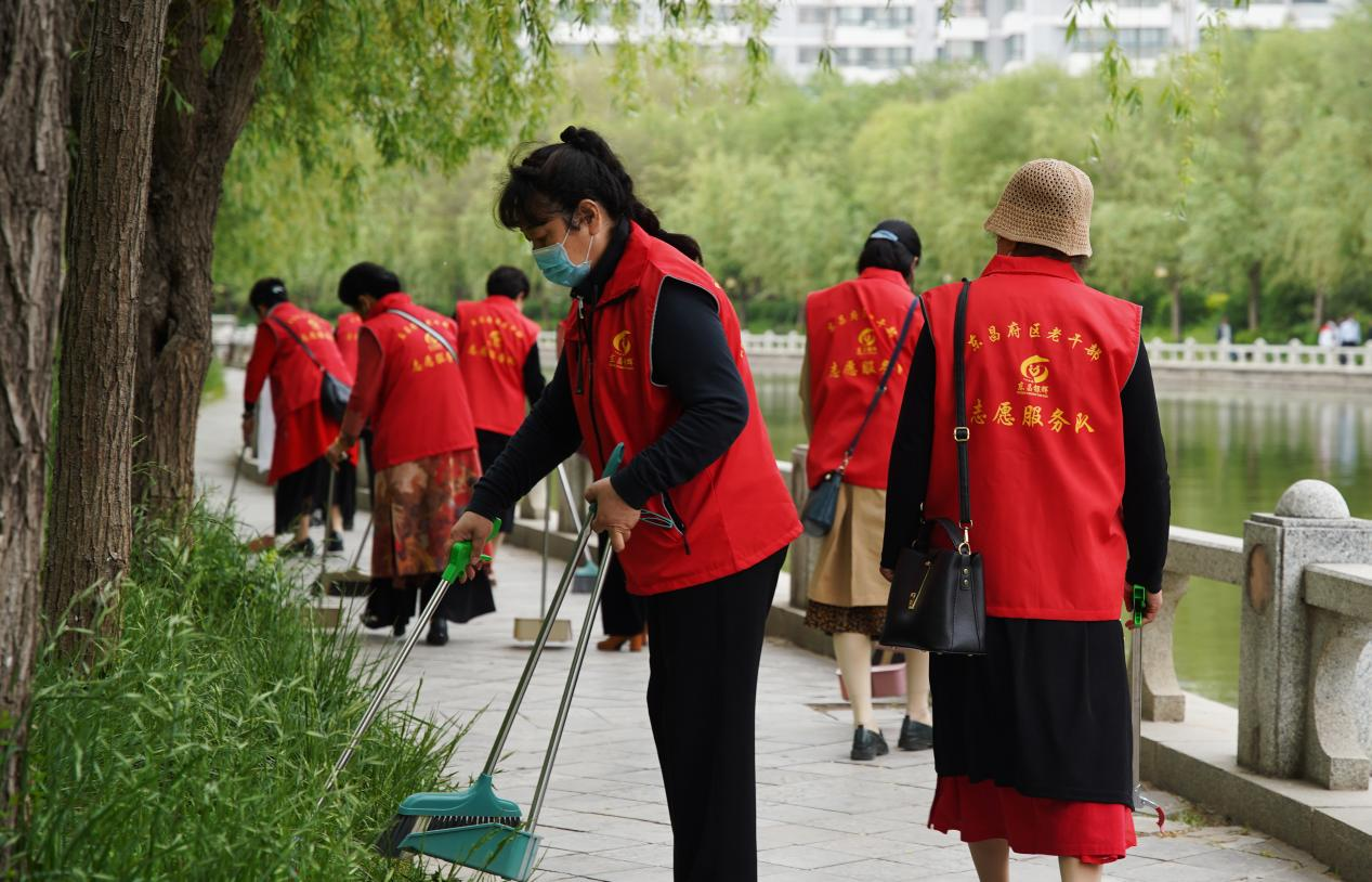 会议结束,东昌银辉志愿服务队部分老年志愿者走上街头,到运河边、社区内清扫垃圾、美化环境,为文明城市创建贡献银发力量。