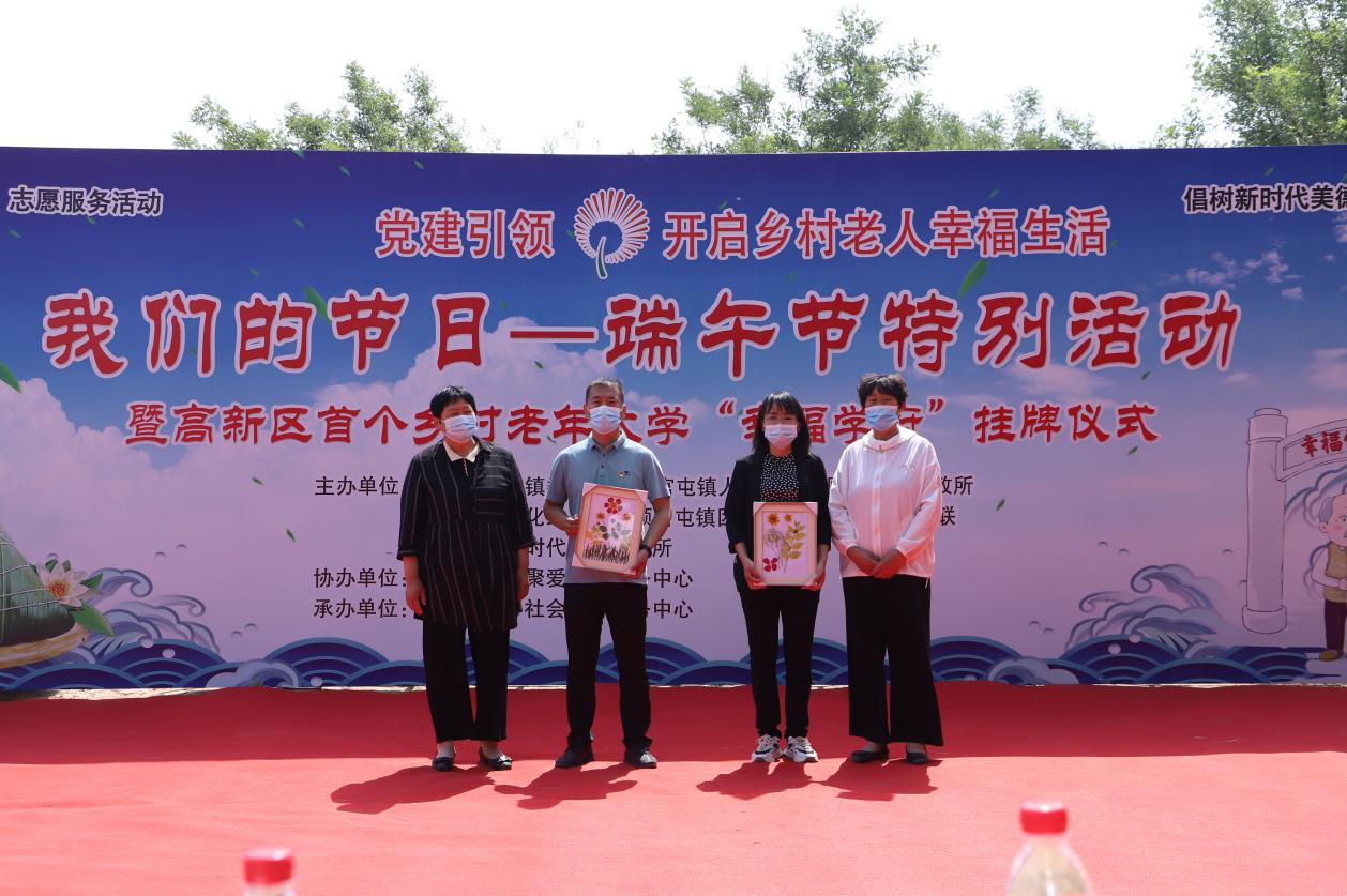 为丰富乡村文化生活,不断提高乡村文明程度,以文化振兴推动乡村振兴,在端午节来临之际,6月1日,聊城高新区端午节特别活动暨首个乡村老年大学“幸福学府”挂牌仪式在高新区顾官屯镇举行。顾官屯镇党委委员、党建办主任韩长刚,顾官屯镇人大副主席康玉会等领导出席活动。
