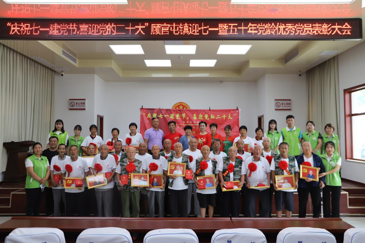 为弘扬伟大建党精神,助力文化振兴发展,全面推进乡村振兴落地见效,6月28日,聊城高新区顾官屯镇召开“庆祝七一建党节,喜迎党的二十大” ——迎七一暨五十年党龄优秀党员表彰大会。顾官屯镇党委副书记、镇长谢添,镇党委副书记黄晓,镇党委委员、党建办主任韩长刚,副镇长任超等领导出席活动。