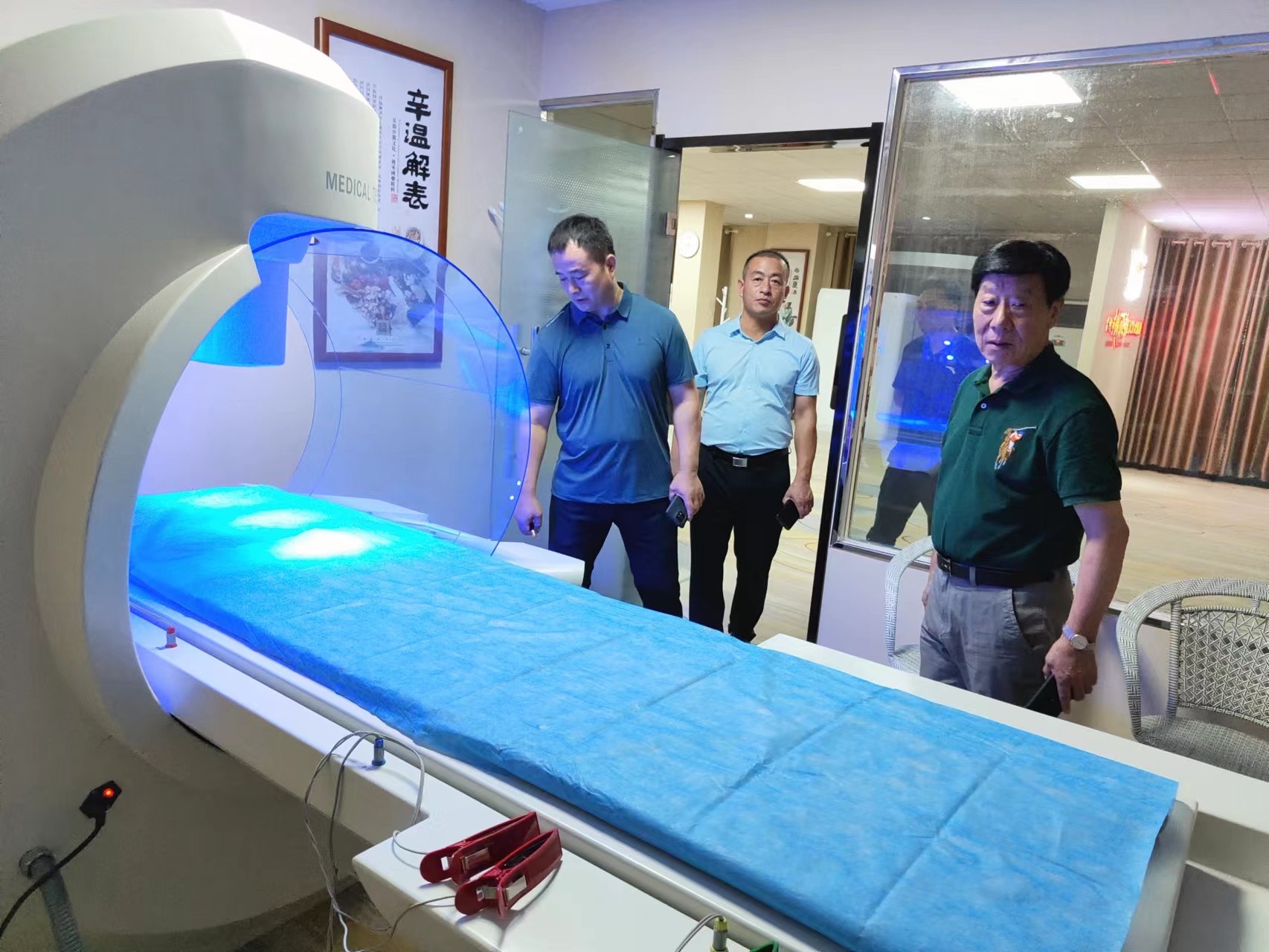 九州控股集团董事长刘钦松、副总经理许继坤、销售中心饮久舒全国营销总监许月伟,陪同李德强参观了中医健康谷的中医药文化发展历史长廊、中国古代十六大名医雕塑长廊、成颐堂健康谷康养理疗体验中心、成颐堂健康谷电商选品中心以及九州控股集团的生产研发中心的产品生产线。