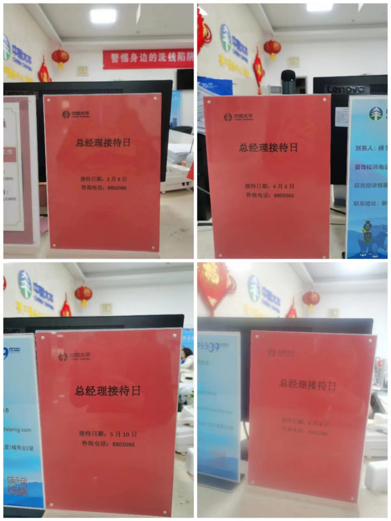 太平财险聊城中支坚持服务便利性原则,强化时限和时效意识,提升消费者服务体验。在收集客户意见方面,太平财险聊城中支于每月15日设立“总经理接待日”,分支机构领导班子和产品、理赔、消保部门建立统一规范、畅通有序、科学高效的领导干部接待客户来访工作机制,形成领导带头、部门协同,责任明确、齐抓共管,解决有效、客户满意的投诉处理工作新格局。在适老化方面,结合营业网点人流量情况及老年居民密集程度增设了血压计、便民医药箱、无障碍通道标识等设施。柜面在受理老年客户时,坚持“以人为本”的服务理念,遵循便利化、人性化的原则,根据客户的需求视情况为其提供绿色通道、上门服务等差异化服务。如老年客户本人无法到营业网点办理业务,可通过电话预约的方式,在评估业务办理类型后为该客户提供上门服务。