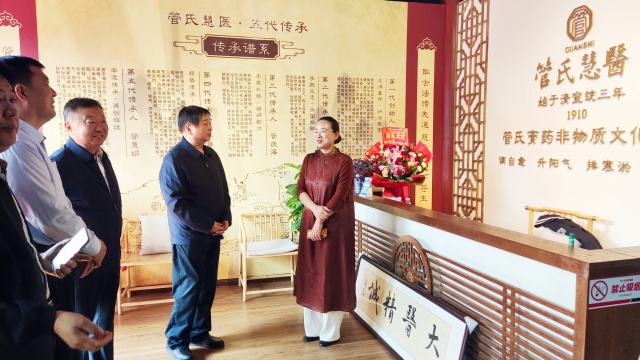 天津市人民政府参事室参事、全国政协委员、天津市民建市委会原副主委冯培英,山东省民营中医药健康行业协会副会长兼秘书长马英聚,民建天津市委会服务志愿委员会副主任李斌,天津市经委原驻深圳办事处主任王希峰,山东中医药大学继续教育中心主任谷洪利,聊城市政协原副主席、聊城市文化和旅游行业党委书记、聊城市汇通黄河运河经济文化研究中心名誉理事长王广柱,聊城市文化和旅游局原党组书记、局长、二级巡视员、聊城市文化和旅游行业党委常务副书记、市汇通黄河运河经济文化研究中心顾问委员会主任刘光辉,山东运河经济文化研究中心副主任、聊城市原房屋征收管理办公室主任、聊城市文化和旅游行业党委副书记、聊城市汇通黄河运河经济文化研究中心理事长周长春,聊城市水上古城文旅有限公司董事长赵海江,聊城市发展改革委原一级调研员、聊城市汇通黄河运河经济文化研究中心常务副书记、秘书长孙凤泉,聊城市汇通黄河运河经济文化研究中心专家委员会副主任王海燕,聊城市人民医院中医科主任、主任医师、聊城市成无己研究会会长谷万里;管氏膏药第三代传承人管庆海等领导嘉宾及中医药爱好者近200人参加庆典活动。