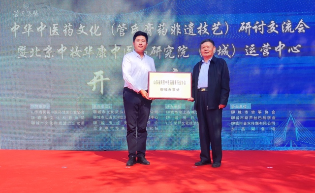 “水城迎宾至,秋风送客来”。10月15日,由山东省民营中医药健康行业协会、聊城市文化和旅游局、聊城市文化和旅游行业党委指导,聊城市文化旅游发展集团有限公司、聊城市汇通黄河运河经济文化研究中心、聊城市成无己研究会、北京中妆华康中医药研究院共同主办的中华中医药文化(管氏膏药非遗技艺)研讨交流会暨北京中妆华康中医药研究院(聊城)运营中心开业庆典在东昌府区中华水上古城“管氏慧医堂”西广场举行。