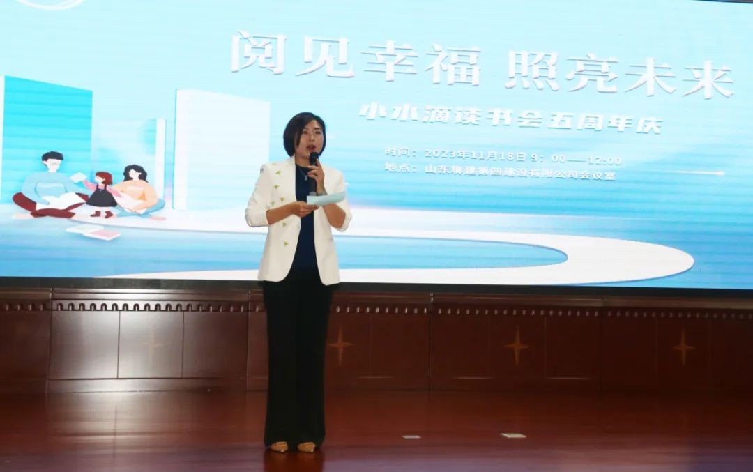 人往春天走,水往远处流,阅读新时代,铸就新辉煌。11月18日上午,小水滴读书会五周年庆典活动在山东聊建第四建设有限公司4楼会议室举行。小水滴读书会创办于2018年11月,属于助推全民阅读的公益性阅读推广组织。五年来,小水滴读书会携着“读书读人读社会,交流交心交真人”的初心,以“讲好中华故事、传播中华文明”为己任,借助聊城名人、好人、社会各界精英,帮助身边人爱上阅读,品味书香,少走人生弯路,传递正能量。读书会的队伍和影响力日渐壮大,一千八百多个日夜,成功举办了250余期,50000多人次参与,众多参与者的生活甚至人生因它而改变。如今,“小水滴”读书会已经成为聊城一个响亮的阅读品牌,助力书香聊城建设的蓬勃力量。