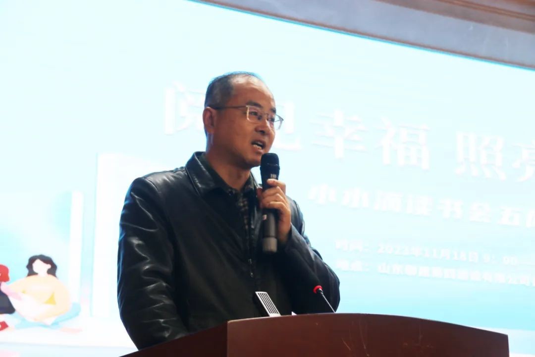 “从一个人到一家人,再到一群人,滴水成川,百川汇海!一道道微光,积聚起一股股勃发的能量,洒下一片片温暖的光芒!在阅读中体现城市气质,在思维运转中快乐成长,在彼此交流中更加进步。非常感谢大家一路以来的支持和帮助,非常感谢大家给予的每一次感动和能量传递!”在全场热烈的掌声中,山东省全民阅读推广人、小水滴读书会会长刘胜前作主题分享,在分享中,刘胜前同大家再次回顾了创立小水滴读书会的初心、发展历程,结合着一幕幕难忘的活动画面,让大家再次见证了小水滴一步步成长的历程。“我们这么多人聚在一起参加读书会,在这里与书香为伴,点亮自己的同时为孩子们培根铸魂。”刘胜前说,接下来,读书会将把强国少年读书会作为重点,为祖国培育新人贡献小水滴力量。