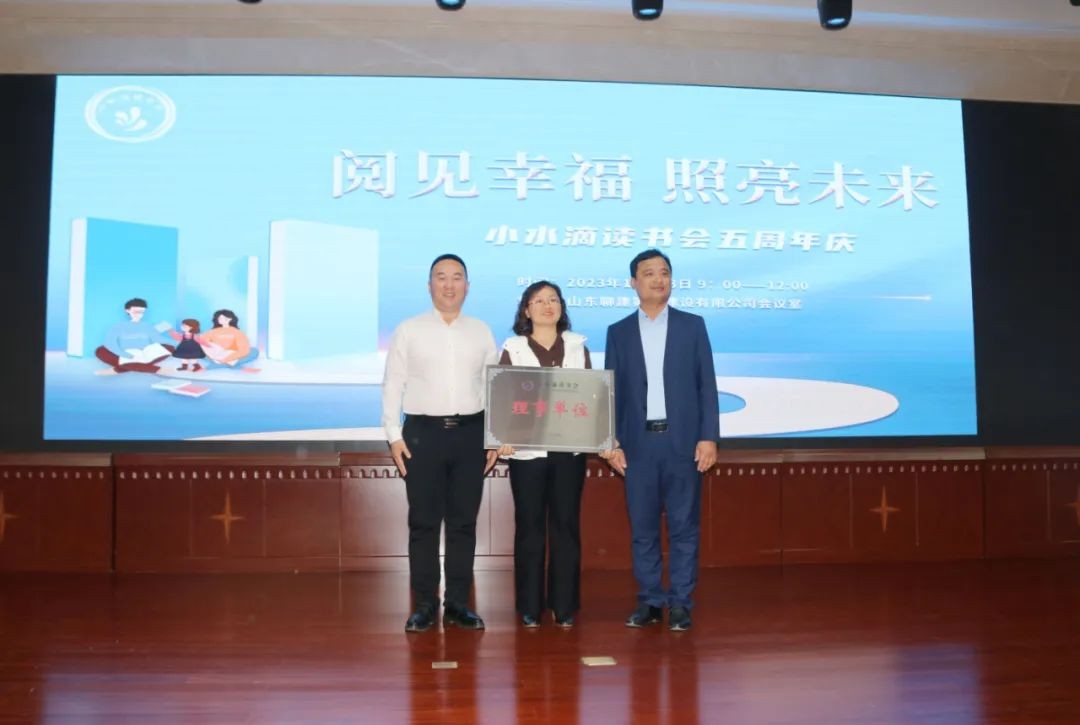 随后,小水滴读书会会长刘胜前、聊城第四建设有限公司总经理李振月为聊城第四建设有限公司副总经理王虹颁发小水滴读书会“理事单位”牌匾。从此,小水滴读书会又多了一处活动阵地,接下来,将通过小水滴读书会发挥更重要的作用,让更多的人共同受益!