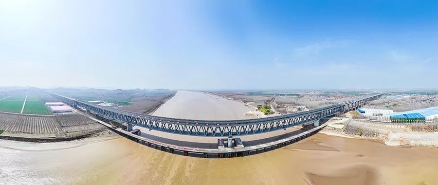 建邦聊泰黄河公铁大桥以公铁合建桥跨越黄河,主桥位于东阿艾山卡口下游2公里处,采用五跨连续钢桁梁,最大跨度180米,是目前国内最大跨径的平弦钢桁梁公铁两用桥。