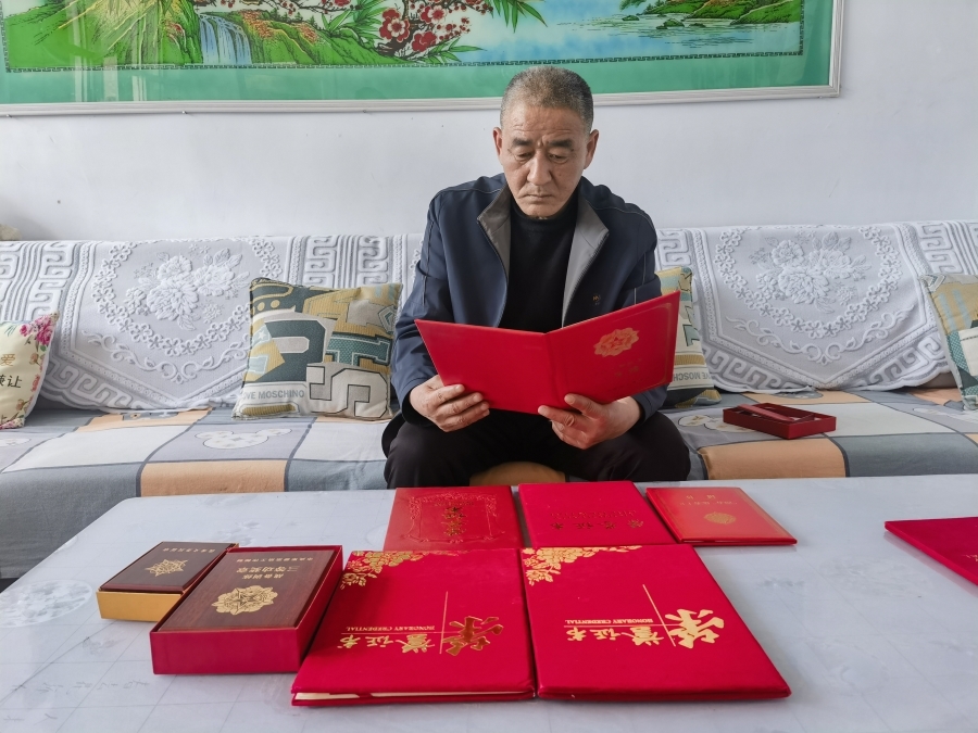 于涛的妻子李淑霞向记者展示了儿子于越在部队获得的各种奖状、奖章。初入部队时,于越手上全是训练时被磨破的皮,慢慢又成了厚厚的茧子,李淑霞在电话里总会跟儿子说,军人就要亮剑沙场、保卫国家,既然做了选择就要坚持到底。2021年7月,李淑霞被评为聊城市“十佳兵妈妈”。