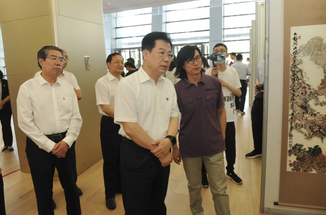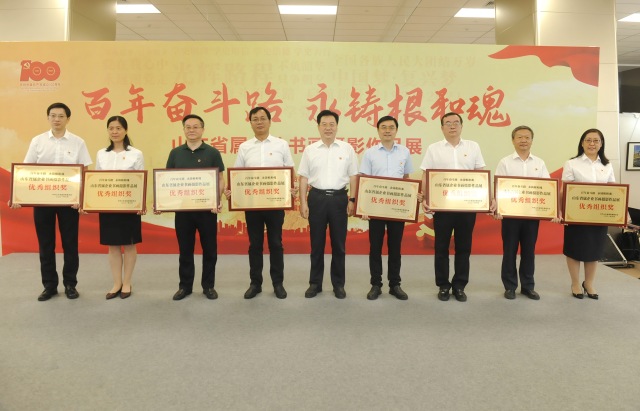 省国资委党委书记、主任张斌(中)为获得优秀组织奖的单位颁发奖牌