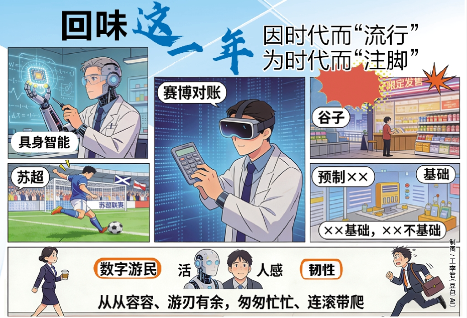 近日,《咬文嚼字》编辑部发布2025年度十大流行语。“韧性”“具身智能”“苏超”“赛博对账”“数字游民”“谷子”“预制××”“活人感”“××基础,××不基础”“从从容容、游刃有余,匆匆忙忙、连滚带爬”入选。 详细>>>