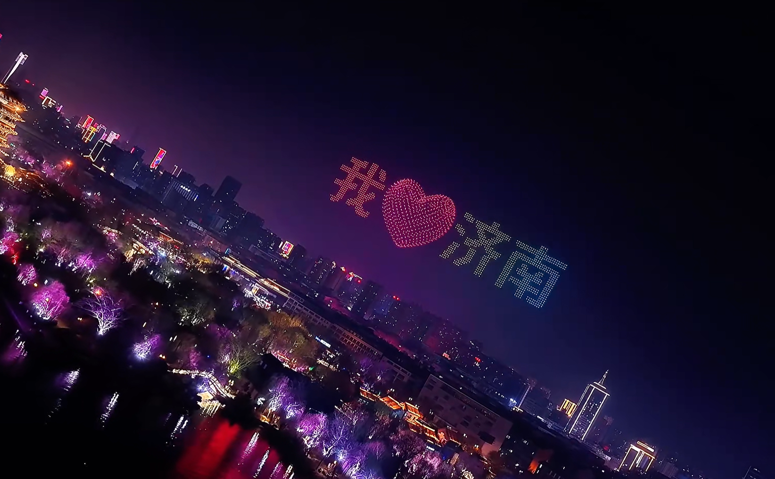 济南明府城上演无人机诗词秀 2000架无人机点亮新春夜空